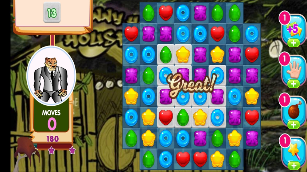Join Sly the Leopard as he sets out on a journey through the jungle collecting candy and points as he cruses to the next level. The levels get sweeter as you match assorted candies to create electrical sweet drops with a gummy surprise. Animal Instincts: The Urban Jungle PUZZLE, includes characters from the international sensation animated series, “Animal Instincts: The Urban Jungle ANIMATED”. Mama, Zeus, Midnight, and Leaps all make an appearance on Sly’s quest to conquer the 100-level puzzle challenge.