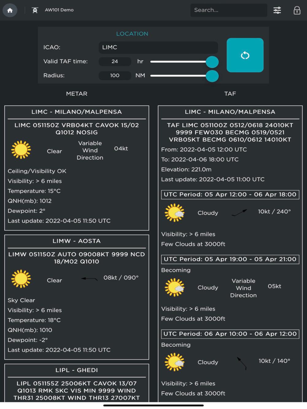Leonardo Helicopters Customers can download and install the AW Skyflight app onto their iPad enabling access to the AW Skyflight web service.