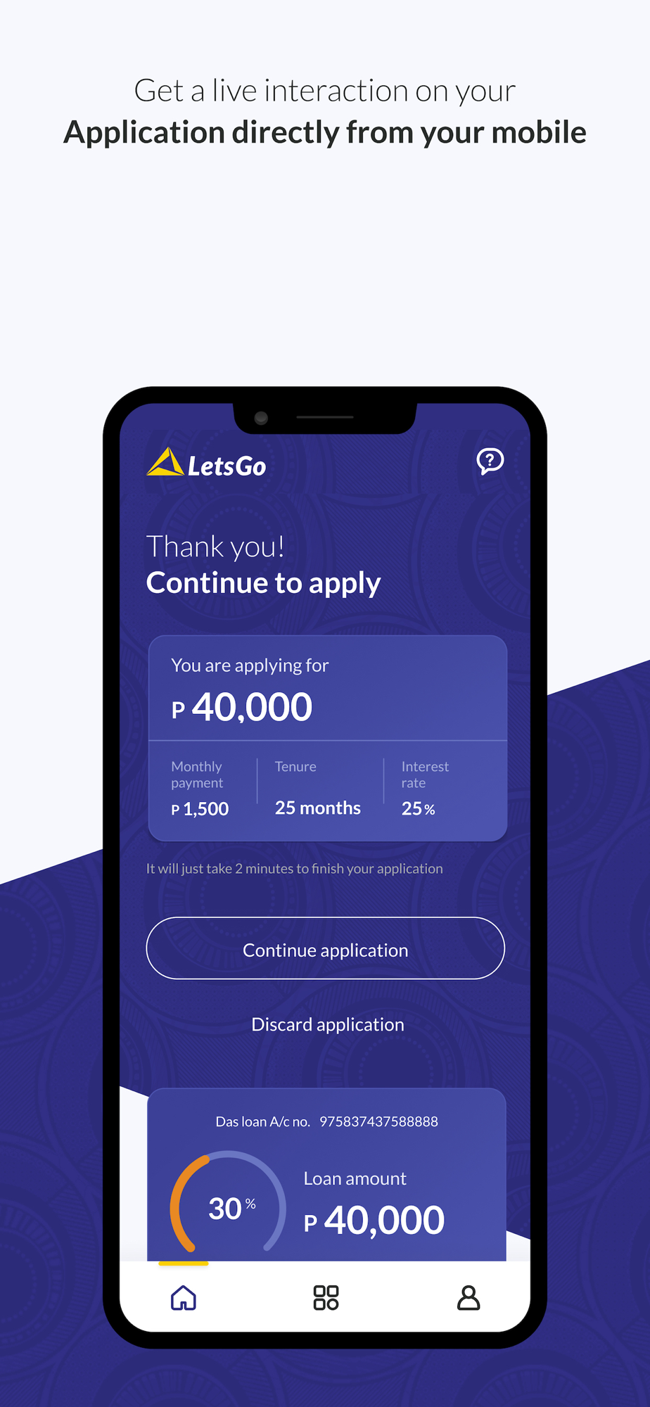 LetsGo offers safe, secure & easy loans.Letshego, your #1 retail financial services partner now gives you an even better way to manage your finances with our new digital platform. As we continue to improve lives, LetsGo gives you personal finance enabling you to quickly apply for a loan top-up & easily track your existing loan repayment progress.