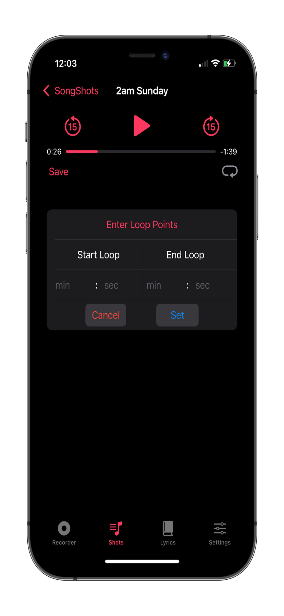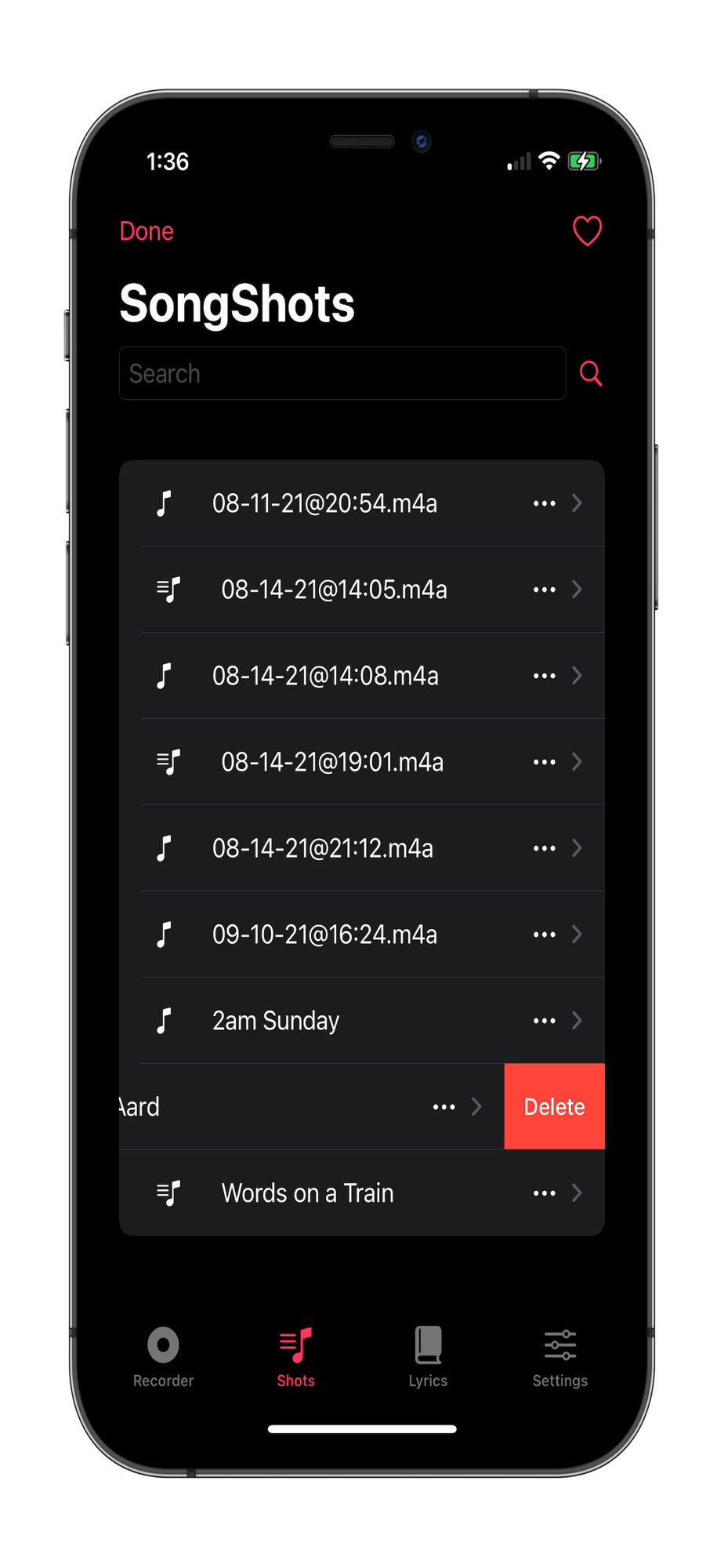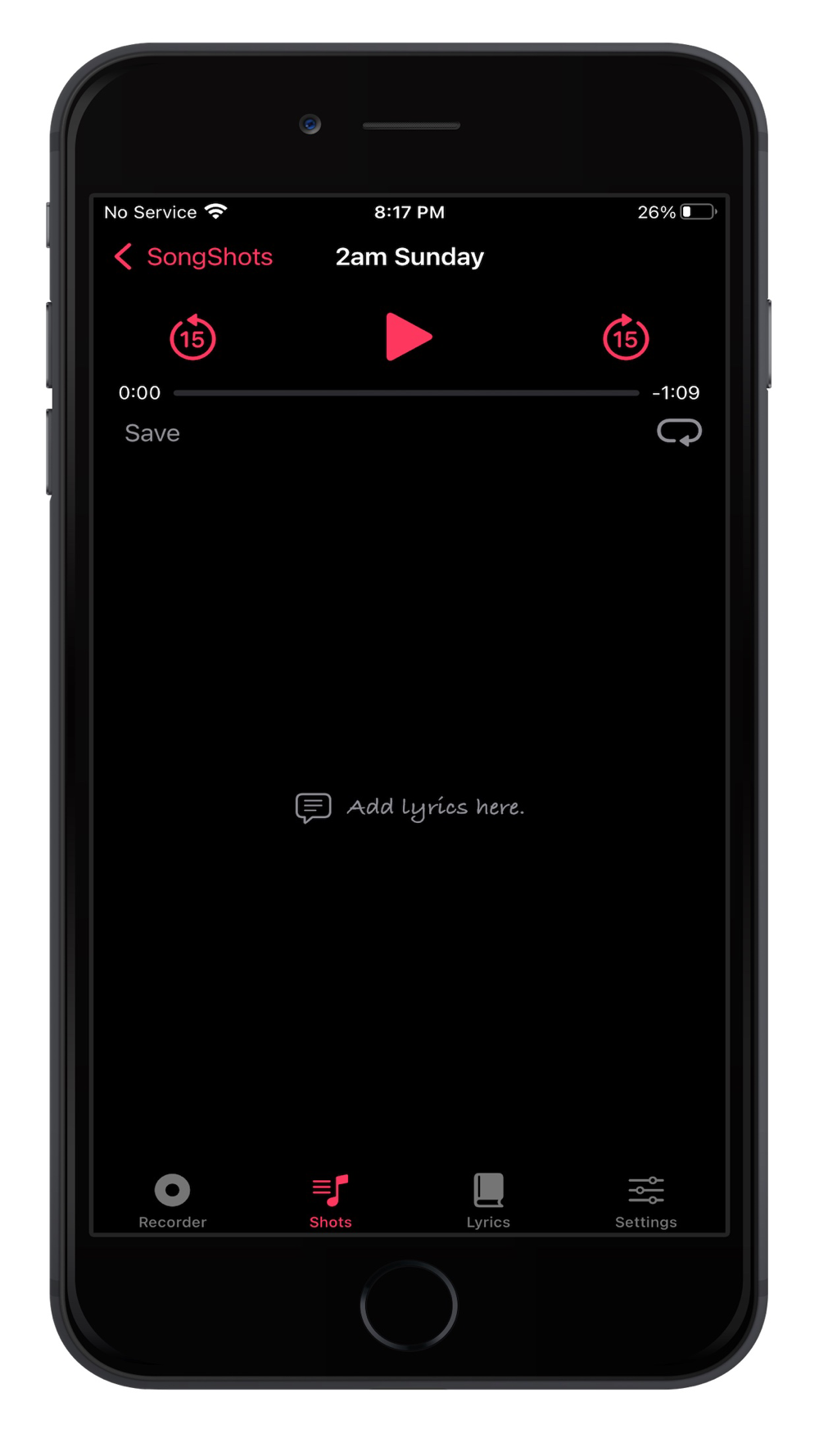 SongShots helps manage your song ideas and demos by linking recordings made on your device with lyric ideas. Start with a recording and write lyrics while listening to your demo, or keep a list of your lyrics/poems and add recordings to them later. Recordings and associated lyrics can be shared and exported as audio and text files, respectively. Also works on Macs with Apple silicon.