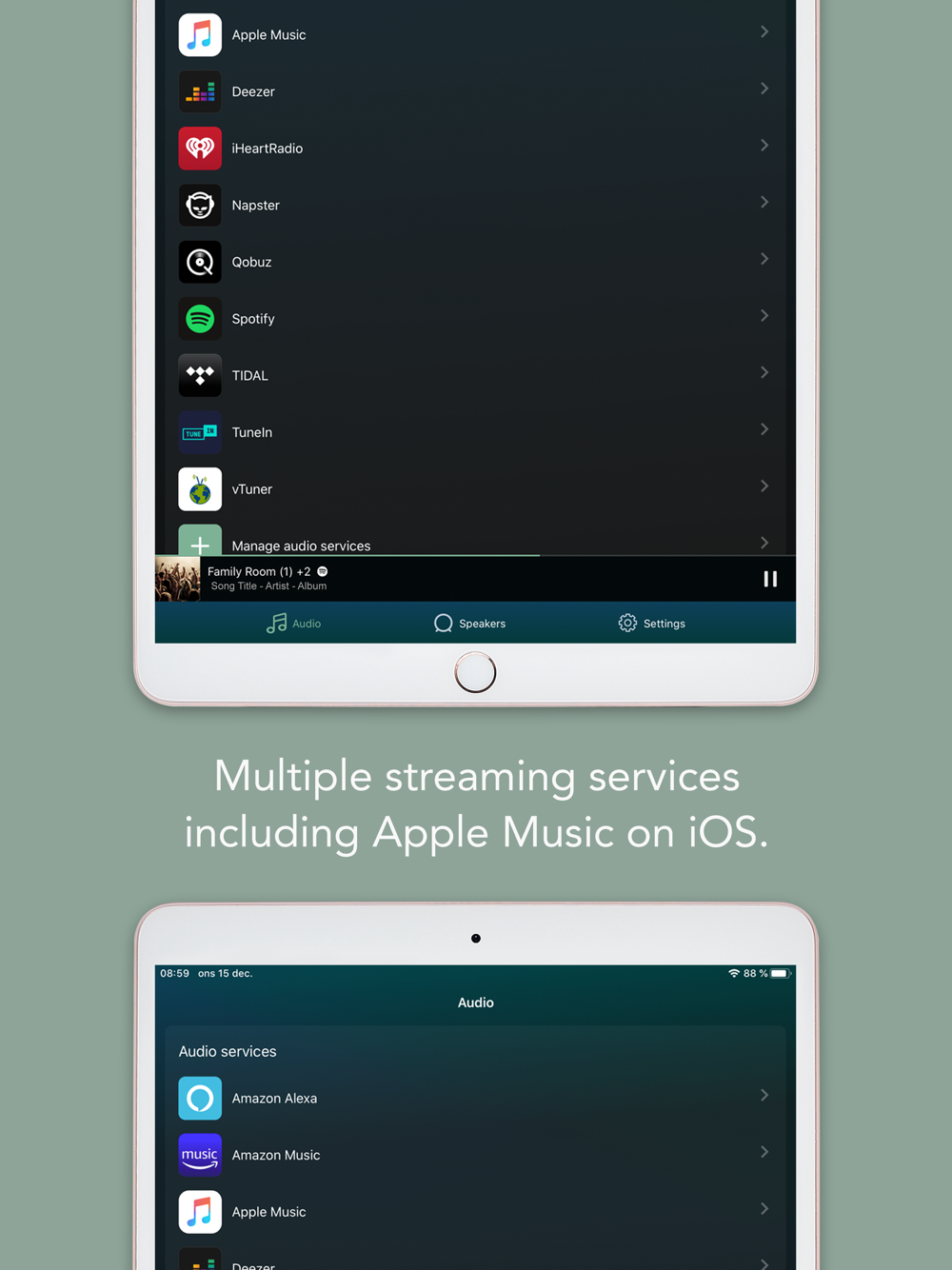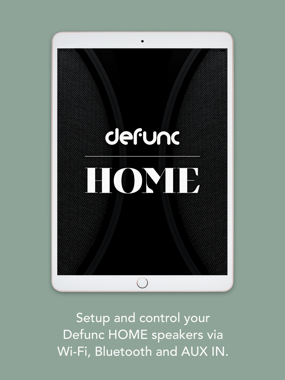 With the Defunc app, you setup and control your Defunc HOME multiroom speakers, preferably via Wi-Fi (Bluetooth also available). Group and un-group speakers, set stereo or mono, adjust the EQ, set placement EQ, set sleep timer, set alarm, play music or podcasts with music services like Spotify, Apple Music, Tidal and many more. Alexa and AirPlay 2 are built-in. Go to defunc.com if you want more information on the Defunc HOME speakers.