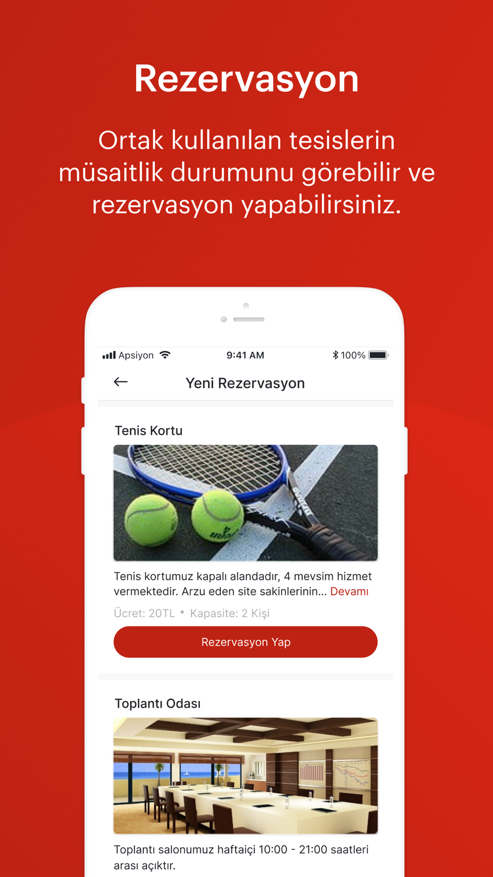Sitenizde rezervasyon gereken alanların müsaitliğini görüntüleyebilir, rezervasyon yapabilirsiniz.
