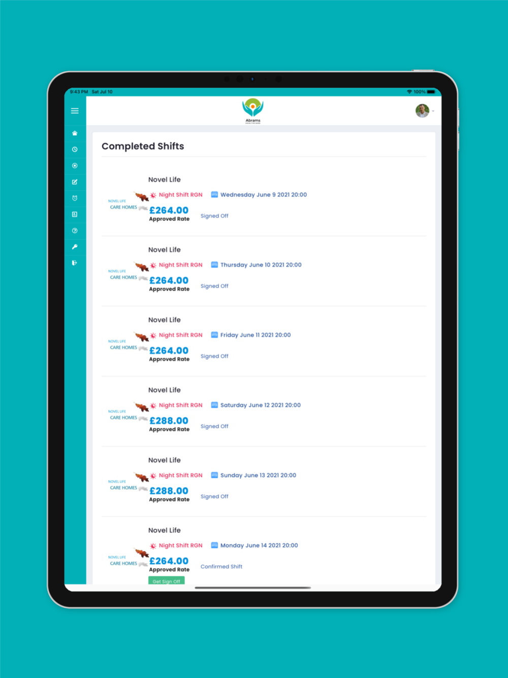Abrams Healthcare app helps nurses, carers and other medical staff to create an account, upload their certificates and maintain current fit to practice status. Care homes and hospitals can post shifts through the app for fast and easy notification to the allocated staff to view available vacancies and accept shifts. The app also helps the staff and employers to see their respective work history, payment history, timesheets etc.