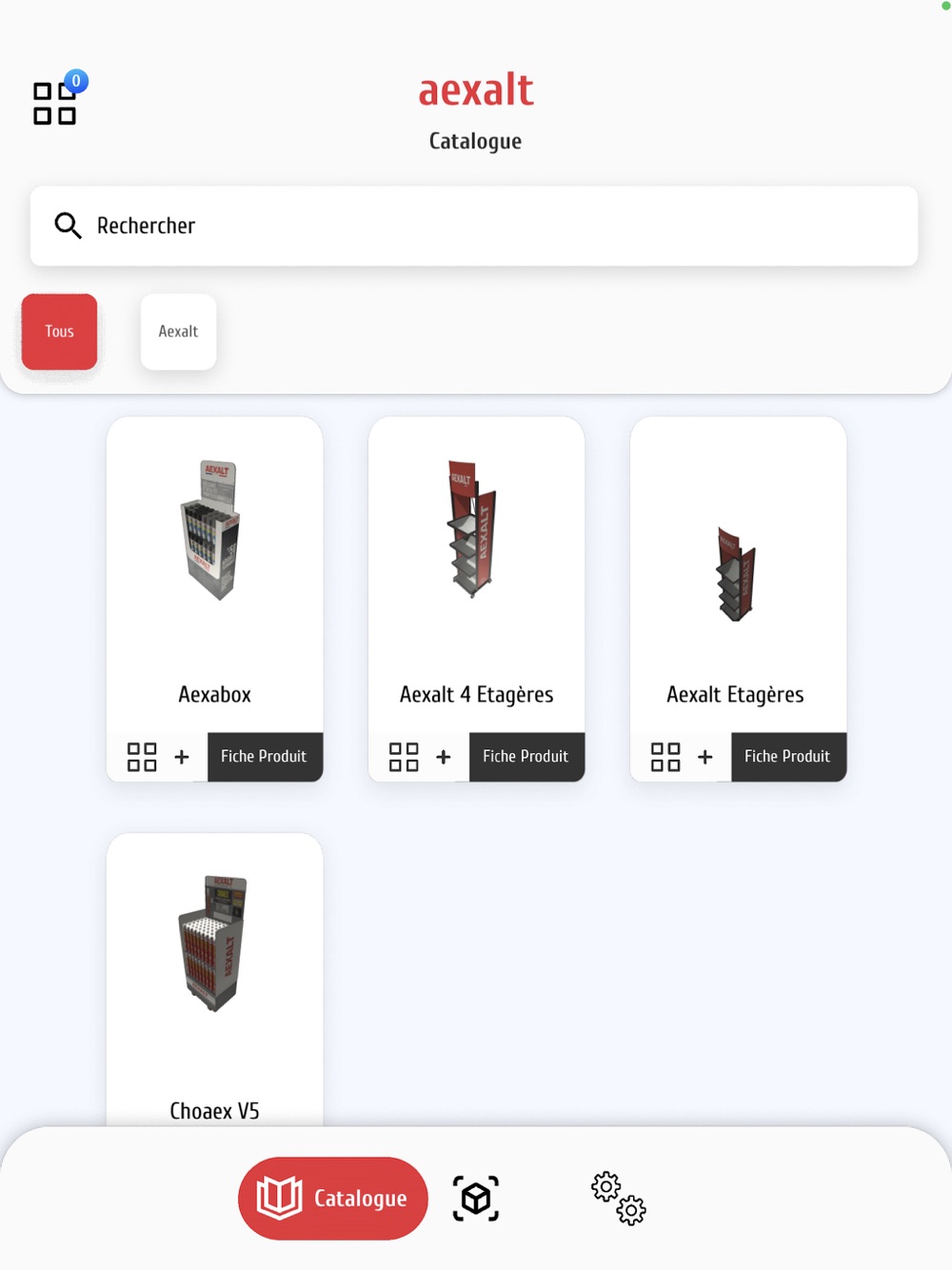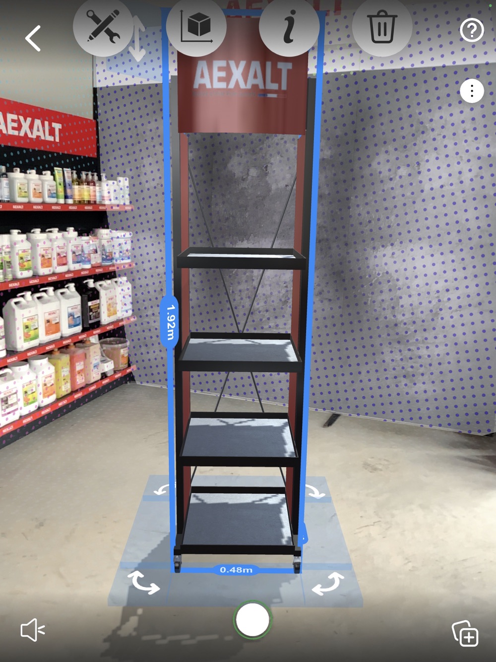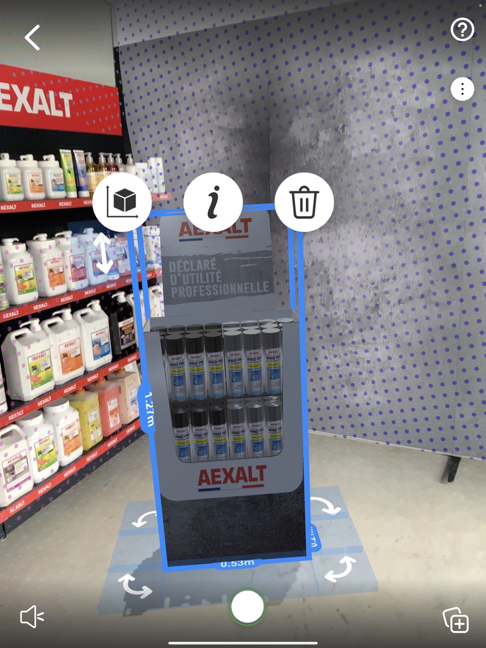 AEXALT Project permet de projeter en magasin nos outils de PLV modélisés en 3D. Avec votre Smartphone ou votre tablette, testez l’impact d’un box ou d’une tour CETEXALT et essayez plusieurs dispositions : à l’entrée du magasin, au comptoir, etc. Voir… c’est vouloir !