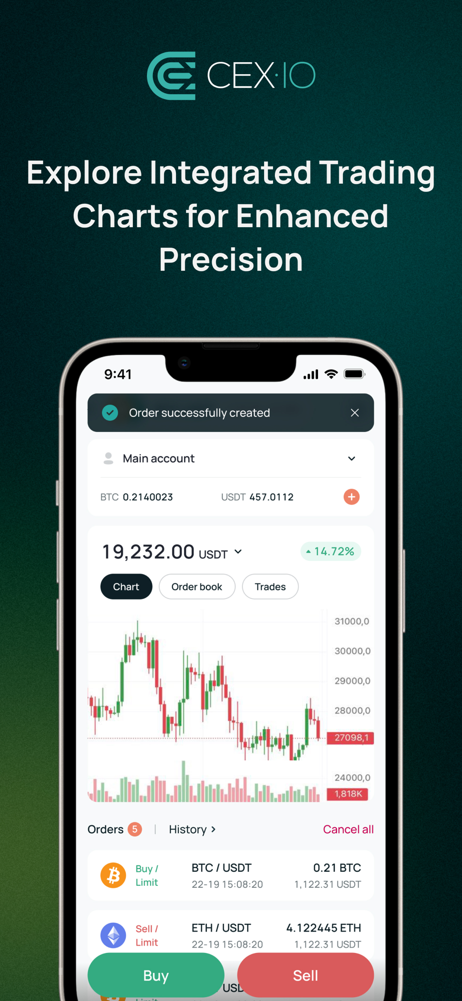 The simple and intuitive interface makes CEX.IO App an essential tool for beginners and advanced participants alike. With unique features for crypto users of all skill levels, start seizing fresh opportunities in just a few clicks: