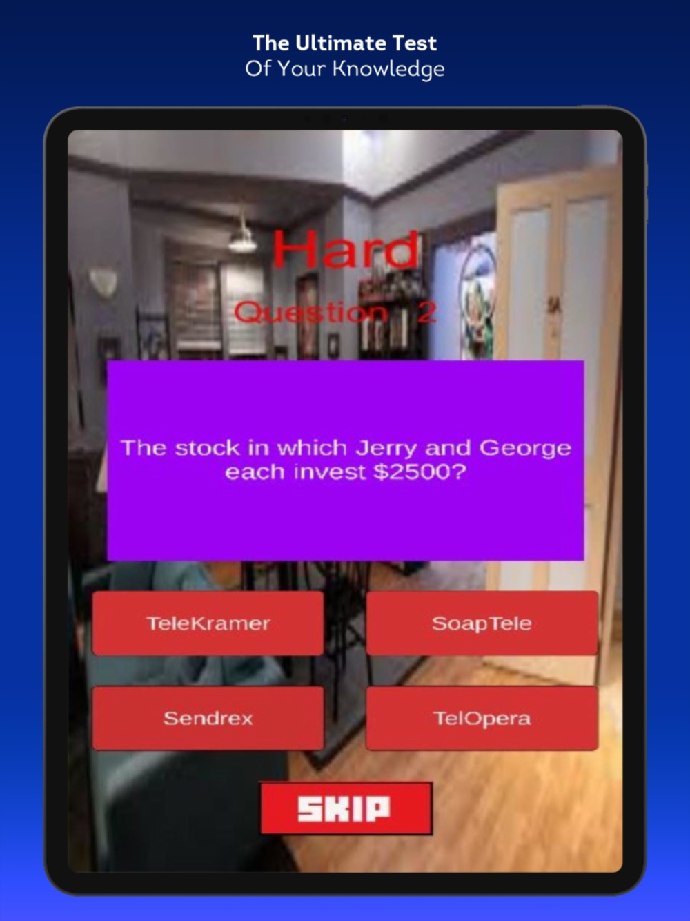 When fans design for other fans, something special is created. Our developers had already watched through the show several times and were looking for a fun trivia app to test and compare their knowledge. Unfortunately, there was nothing available that was on par with the fun and feel of the show itself. So we decided to create our own app, and after several months of hard work are proud to present Seinfeld Trivia Challenge. Perfect for testing knowledge, practicing, or just killing time, our app offers: