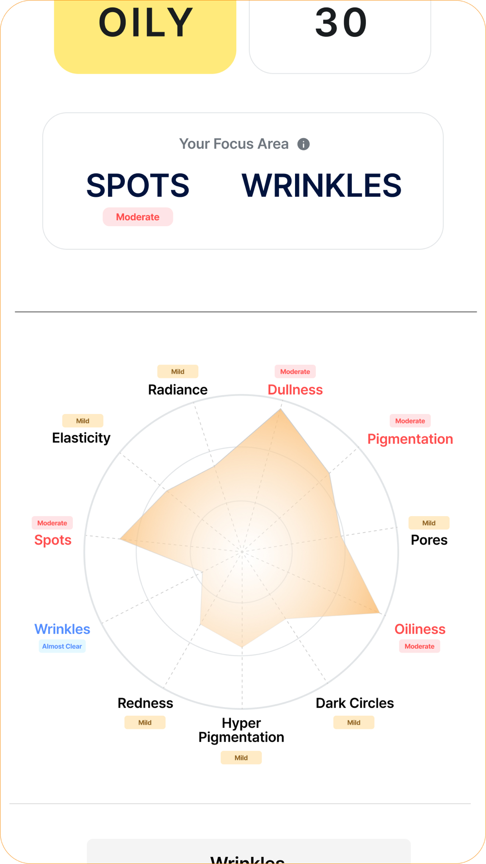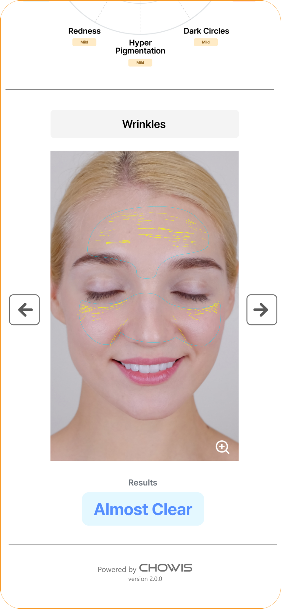 Our easy-to-use APP allows a user to take three facial images from different angles with the help of an audio guide for proper image capturing. Text guidelines are also available to help users navigate through the app smoothly. Captured images are processed by our AI and algorithm, and results are shown in simple graphs and wordings for easy understanding.