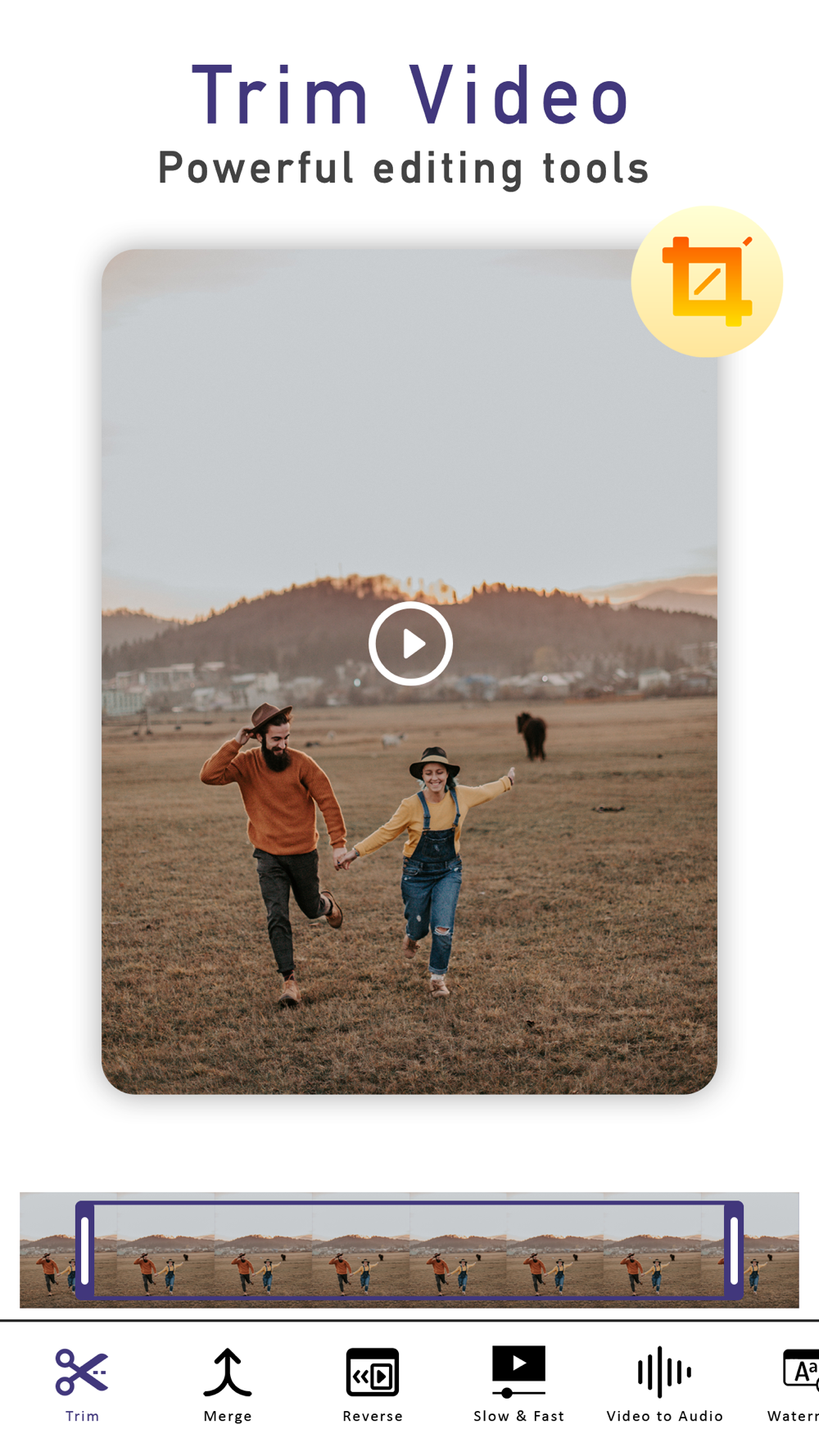 Viva Video Editor features - video trim, cut, merge, fast & slow motion, video to add watermark, reverse video, video to gif, image to gif, add filters to video, video to mp3 convert, crop video without losing quality, etc.