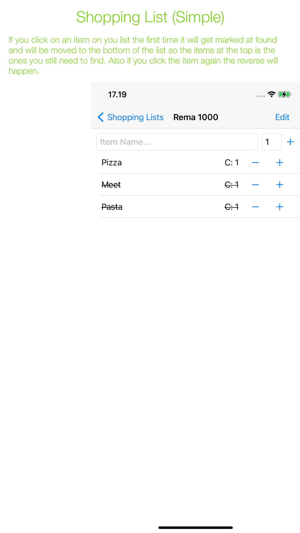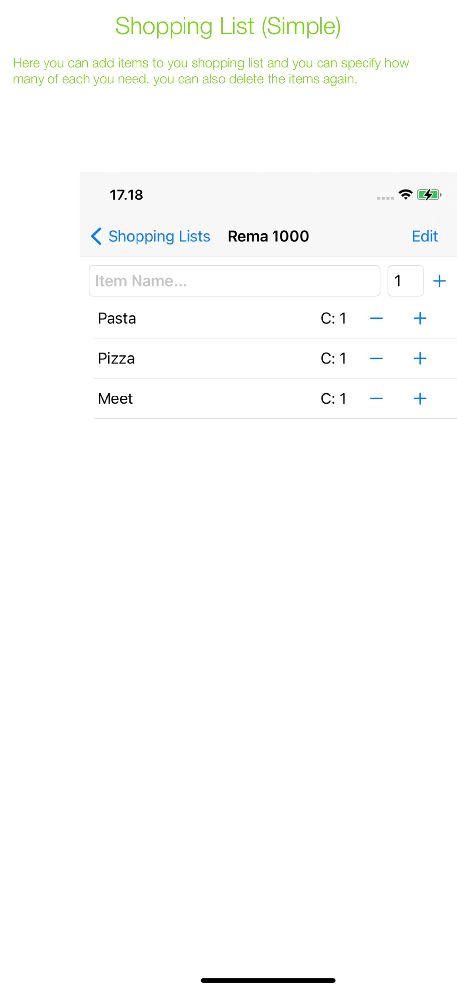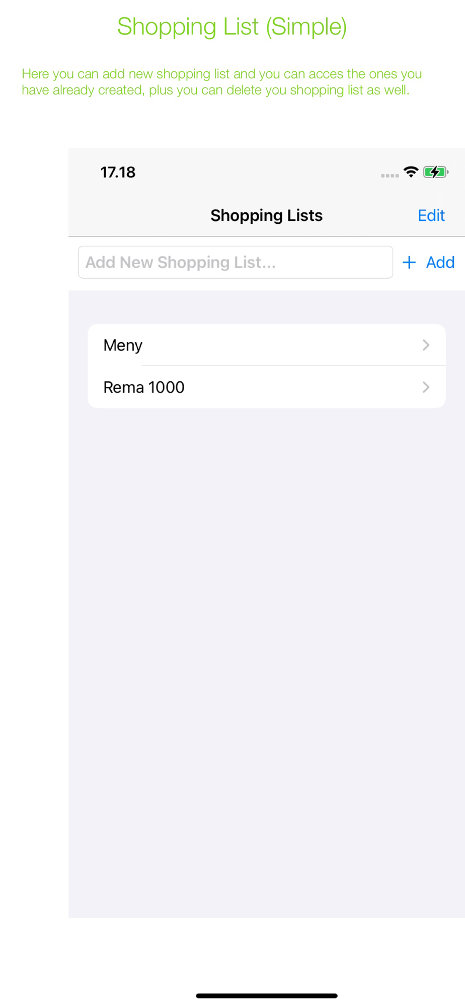A simple Shopping list where you can create a shopping list for each of you shops you shop in.