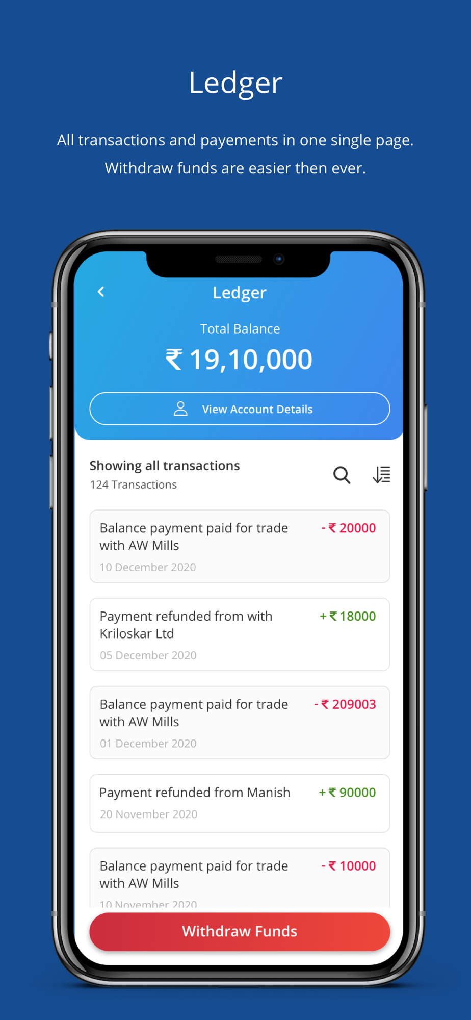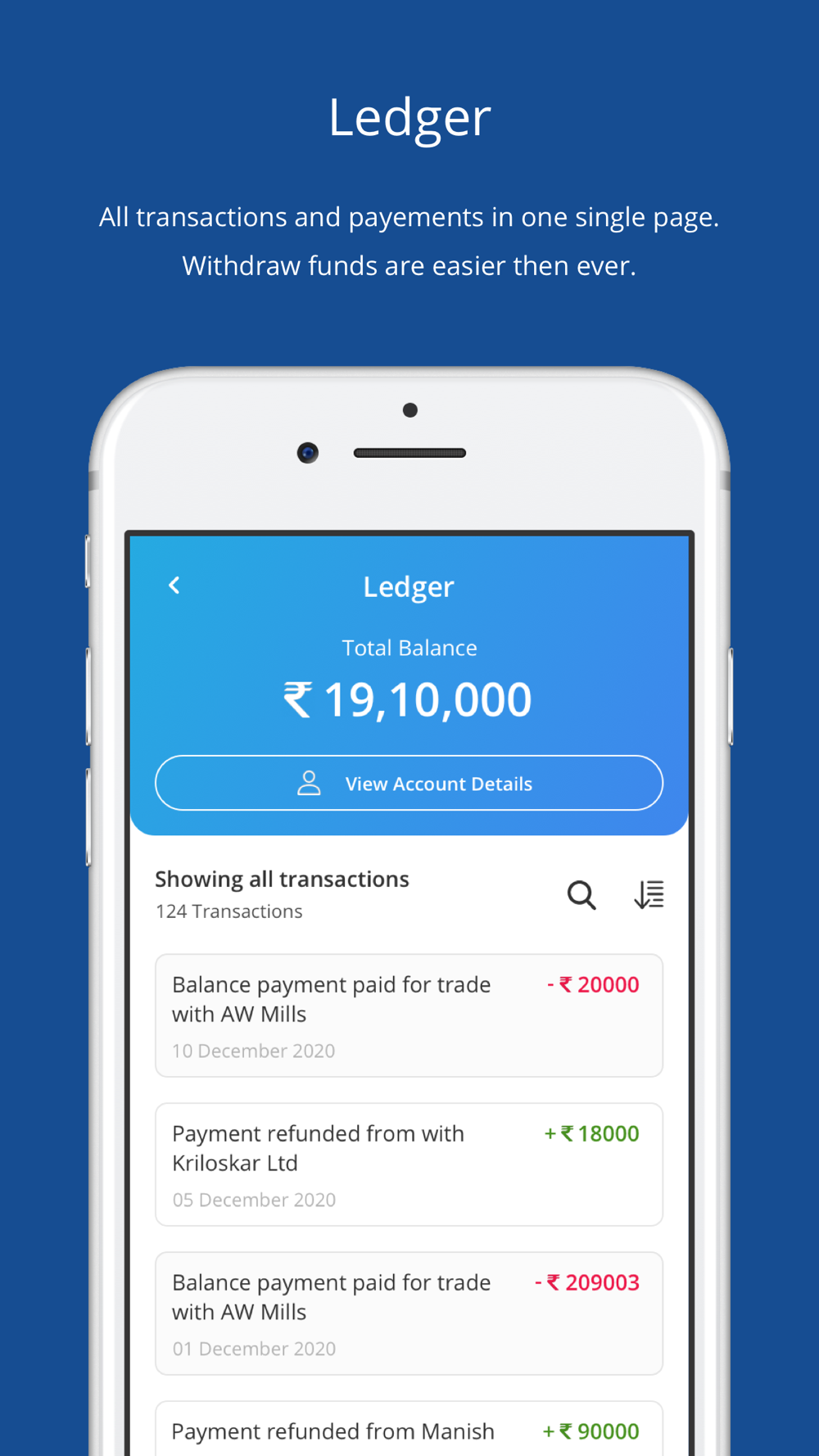 • 4. Ledger: For all the transactions you have made, now you can keep a tab on all your previous & current dealings under the ‘Ledger’ section.