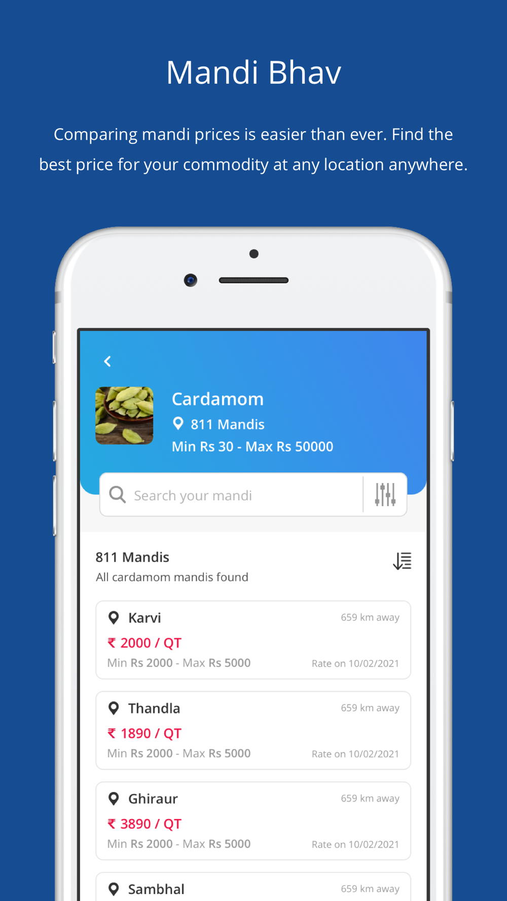 • 3. Mandi Bhav: No need to go and ask around anymore! You can now compare all the commodity prices with just one tap in mandis near you or in any location of your choice.