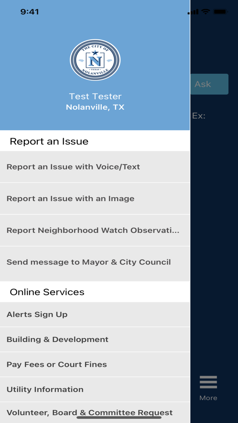 The My Nolanville app is for anyone who lives in, or visits, the City of Nolanville, Texas. The app has integrated image recognition technology to enable users to report issues to the city by just snapping a picture with your smartphone and submitting it to Nolanville for review. Information is at your fingertips - from sending a message to City Council to requesting bulk pick up serves. Other features include reporting power outages and staying current with Nolanville related news. The application will be continuously adding other city services.