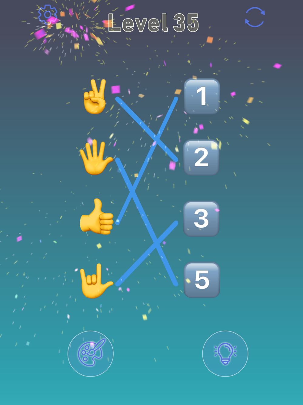 - When you correctly connect all the emoticons, you complete the level.