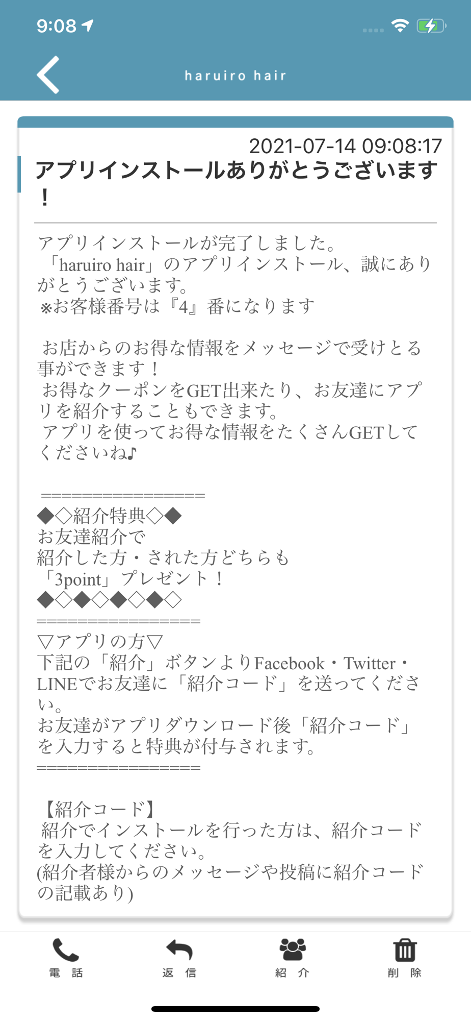 haruiro hairのアプリはSNSを通じてお友達に紹介する事が可能!