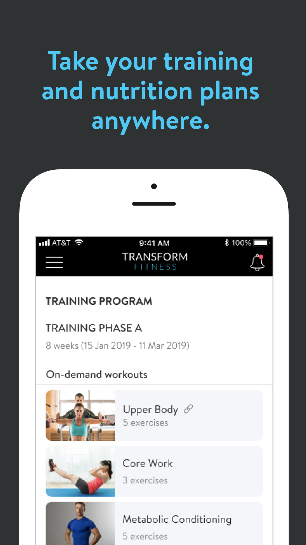 With the Transform Fitness Coaching App, you can start tracking your workouts and meals, measuring results, and achieving your fitness goals, all with the help of your dedicated Coach.