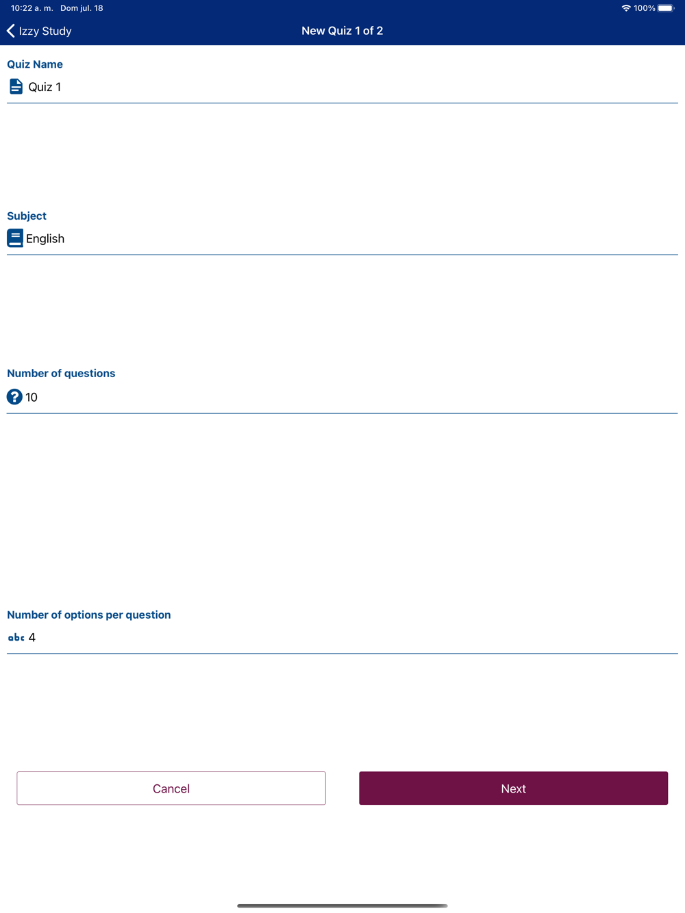 You just have to create the quiz of the subject you want to study, decide how many questions you want your quiz to be, the number of options to answer, enter the questions and the correct answers.