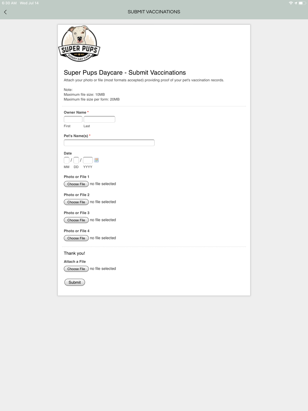 Download our app and have instant access to all the information you need to manage your pet care needs with Super Pups Daycare from the convenience of your mobile device.