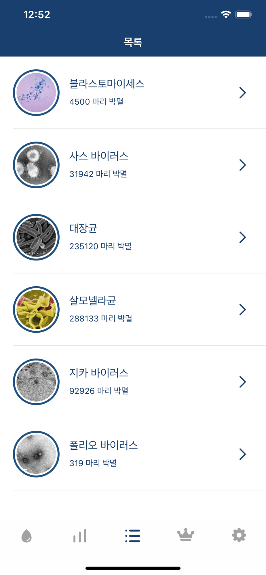 3. 세균 콜렉션 기능. : 퇴치한 세균을 확인하고, 세균의 자세한 정보를 알 수 있습니다.