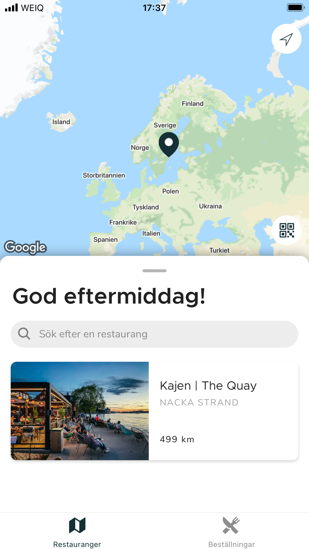 Beställ och betala från restaurangerna runt Kajen på Nacka Strand