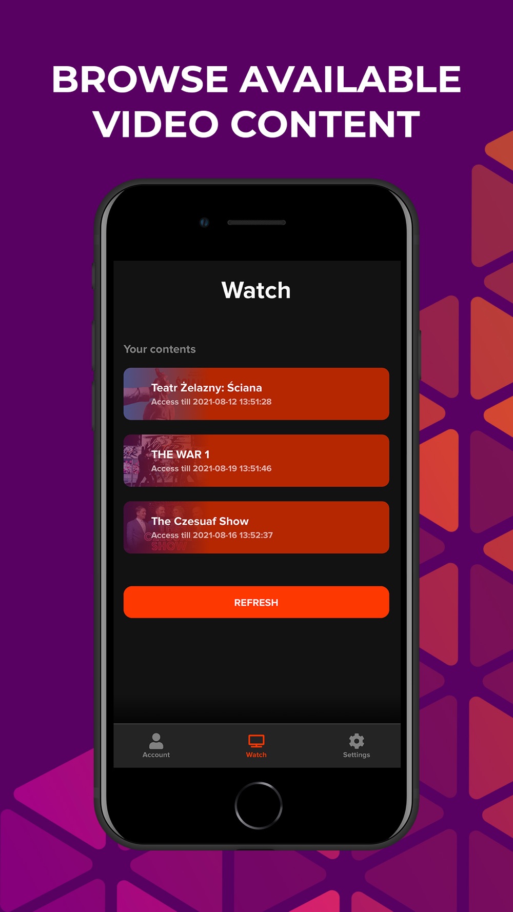 - Access to many events broadcasted live in the PPV system such as concerts, martial arts, theatre and comedy performances and more in real time