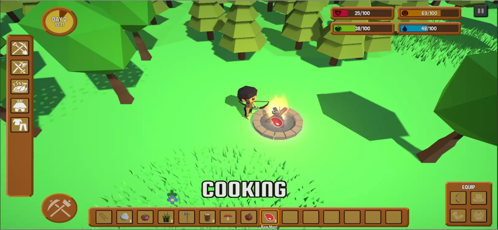Go and explore the wild forest! You can make weapons, equipment, buildings. This 3D survival action game simulator will help you develop strong survival skills and instincts as danger is always lurking around. Can you make it out alive? Play to find out!