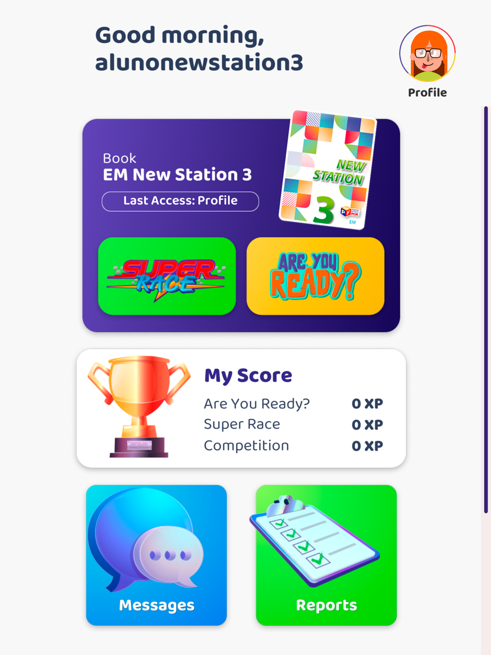 Plataforma virtual de aprendizagem do Programa Bilíngue Fisk contendo diversos recursos online exclusivos para o aluno praticar inglês.