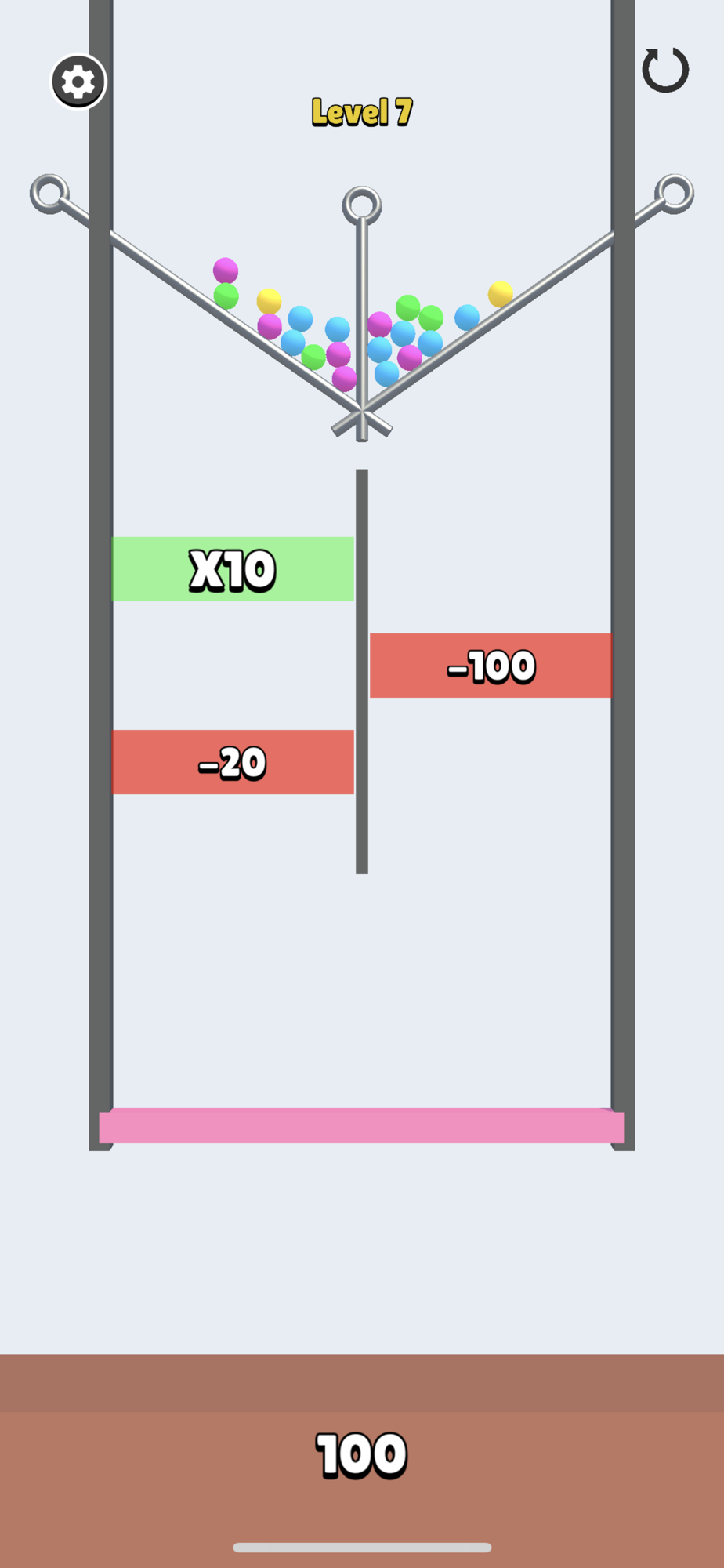 Pull the right pin to drop balls in the right place to collect the maximum balls.