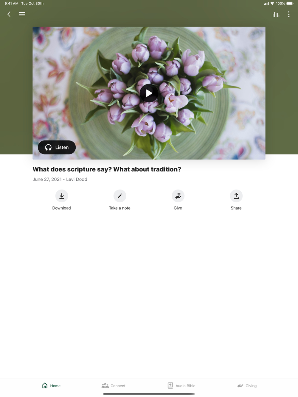 This app will help you stay connected with the day-to-day life of Highland View Church. With this app you can: watch or listen to past messages; stay up to date with push notifications; share your favorite messages via Twitter, Facebook, or email; and download messages for offline listening.