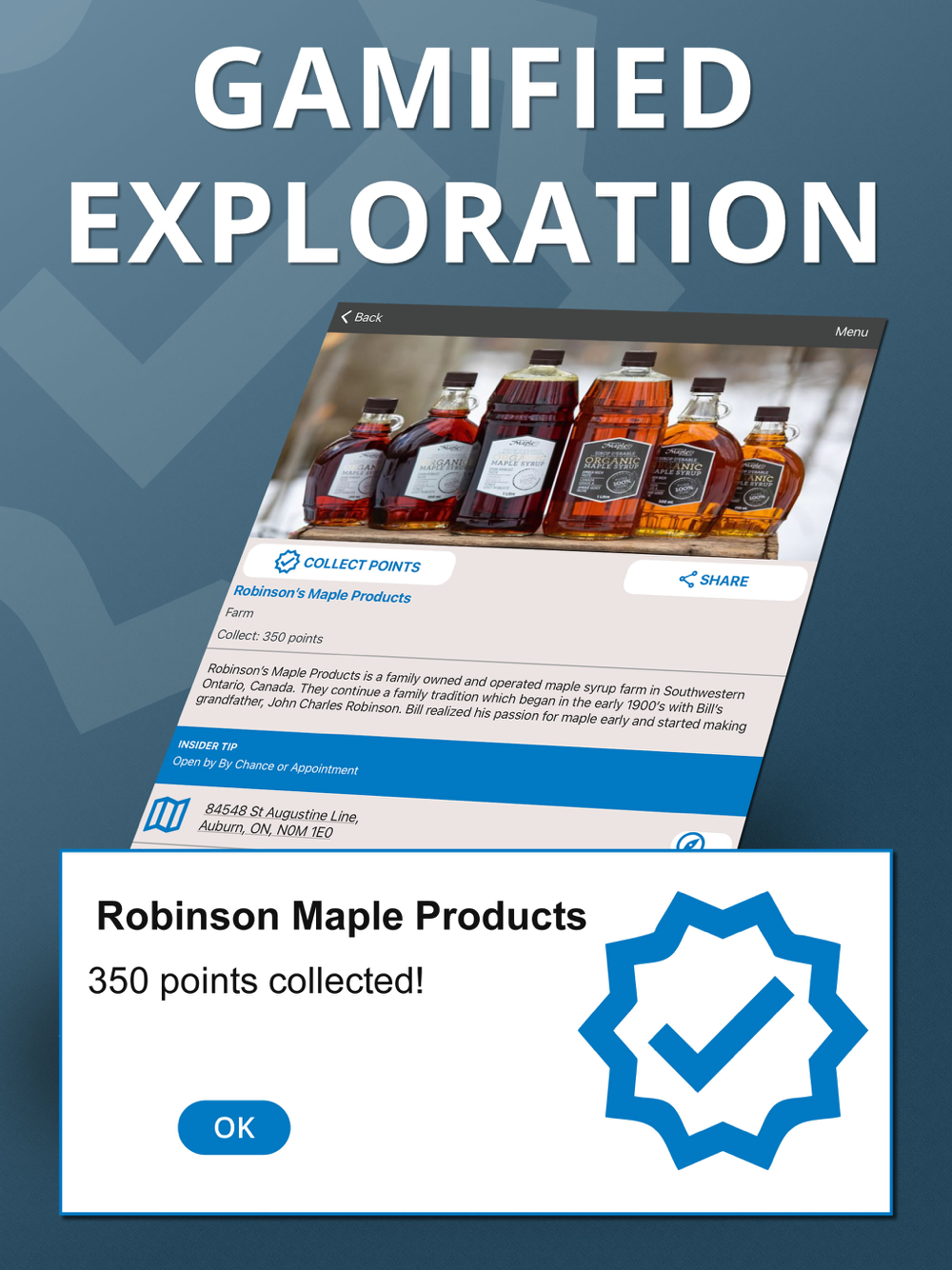By visiting featured locations, you can collect points that will enter you into a monthly draw for a gift certificate to one of the many fine local food experiences Ontario's West Coast has to offer. Use the mobile app to discover and savour the many tastes of Huron County, and with each visit, you will improve your odds in winning the monthly prize.