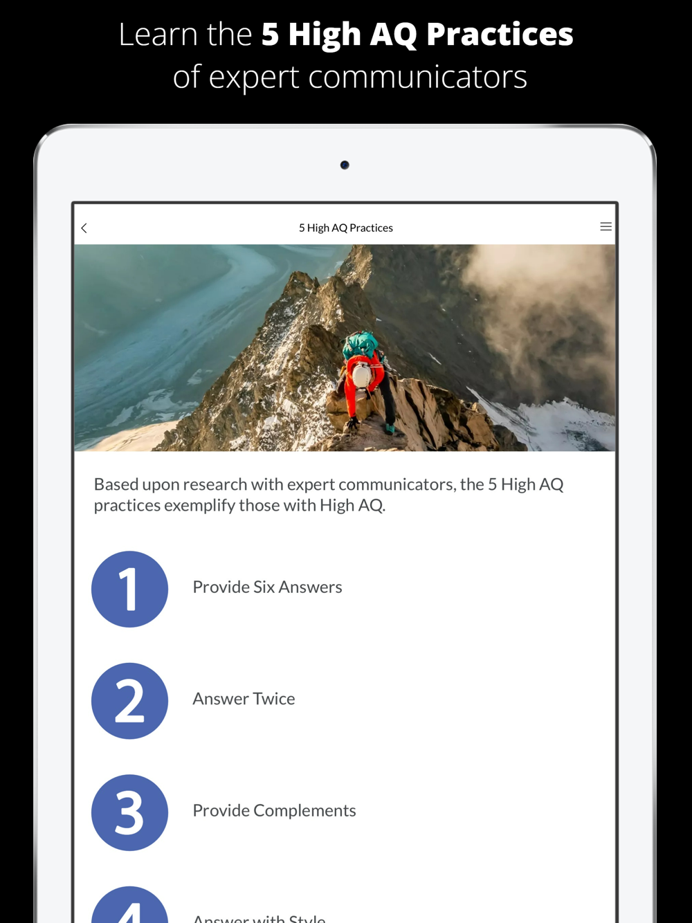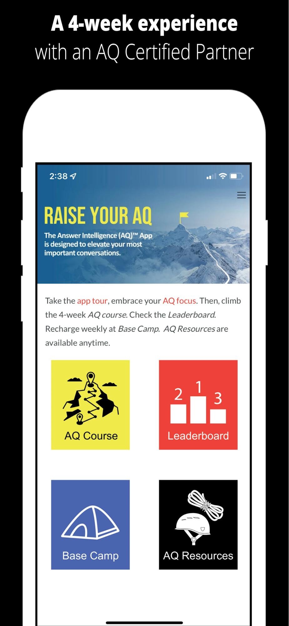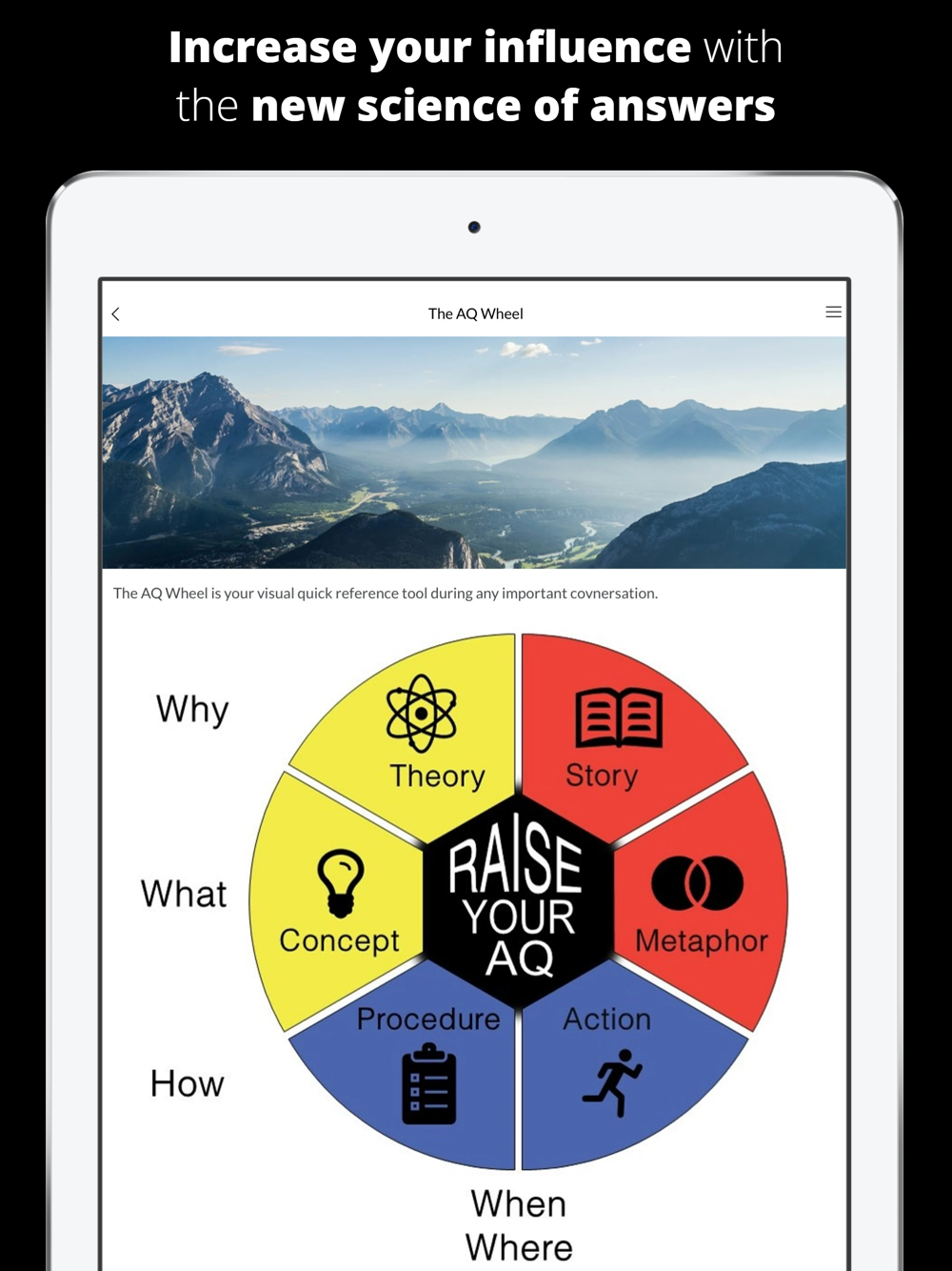 Raise Your AQ. Answer Intelligence (AQ)™ is the ability to provide elevated answers to explain and predict in a complex world, emotionally connect, and achieve results. Increase your ability to provide elevated answers to important questions.