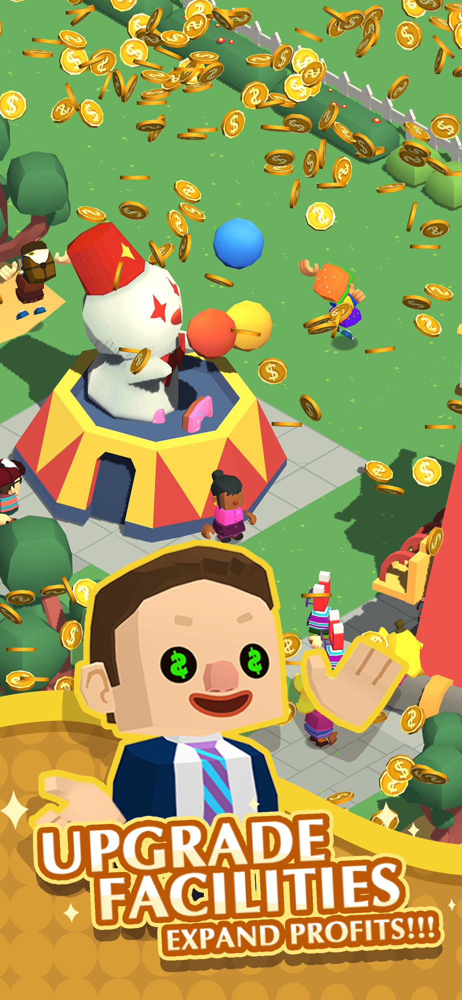 Improve your park with new facilities. Prepare marketing campaigns to bring more visitors to your crazy park, and offer them the most enjoyable experience.