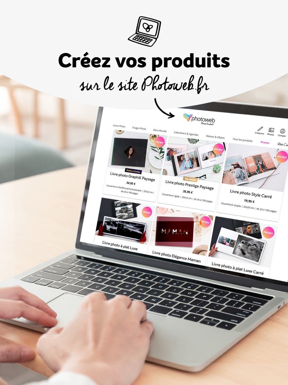 - Si vous souhaitez créer vos Livres Photo, Tirages Premium ou Vintage, Posters encadrés, Toiles, Tableaux, Magnets ou autres produits photo personnalisés depuis votre ordinateur.