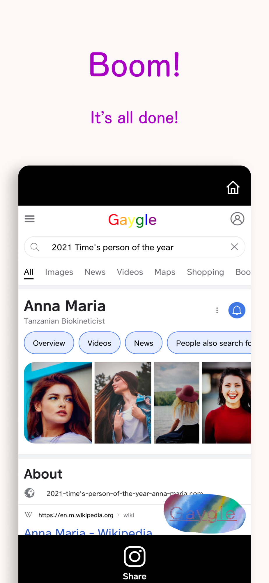 Make an awesome search result page! You can make anyone famous; yourself, your pet, food, friend, family, school, business, and more. Be creative and brilliant!