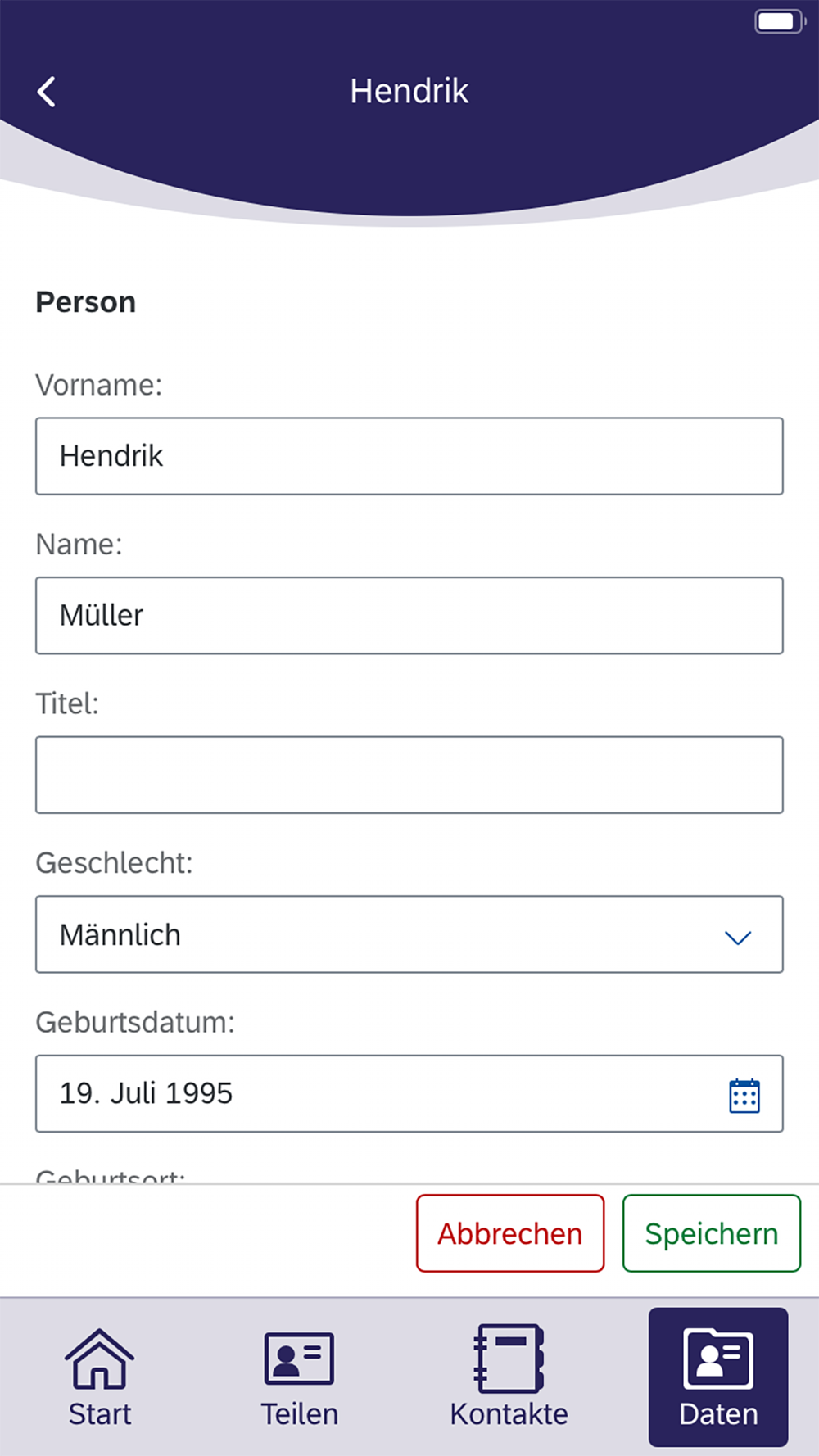 Mit der Enmeshed App kann die eigene digitale Identität vollumfänglich verwaltet werden. Persönliche Informationen können verschlüsselt und datenschutzkonform zu anderen Kontakten weitergegeben werden.