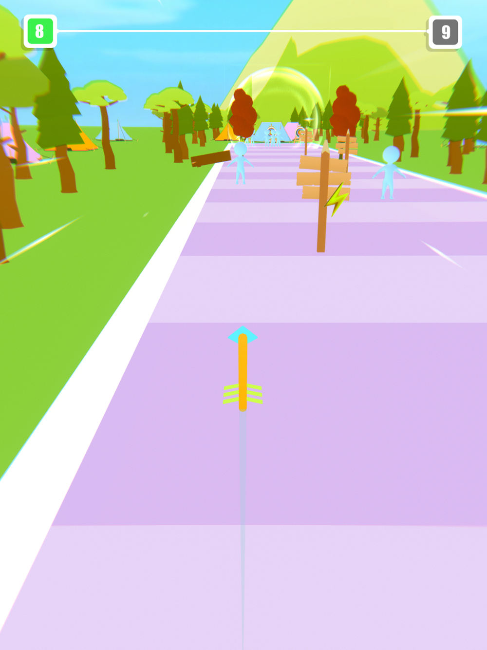 Control the arrow to overcome obstacles and destroy the targets in front of you