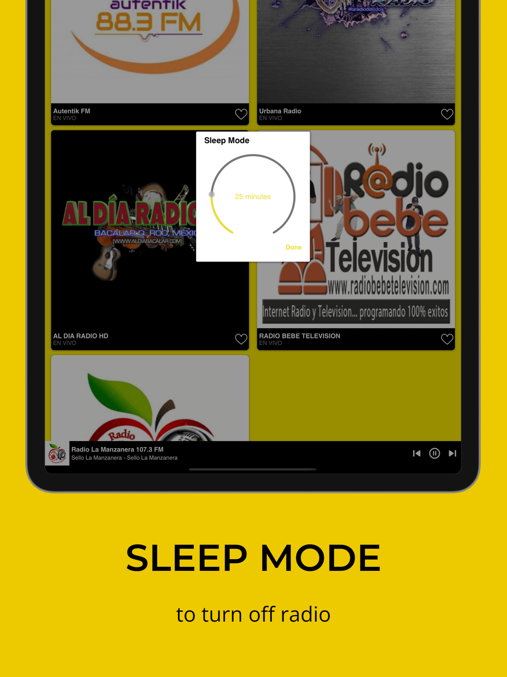 Our 104.9 FM Radio stations application has a very nice design and a very easy to use menu. It also has a shutdown timer with which you can program the time in which the radio is turned off.