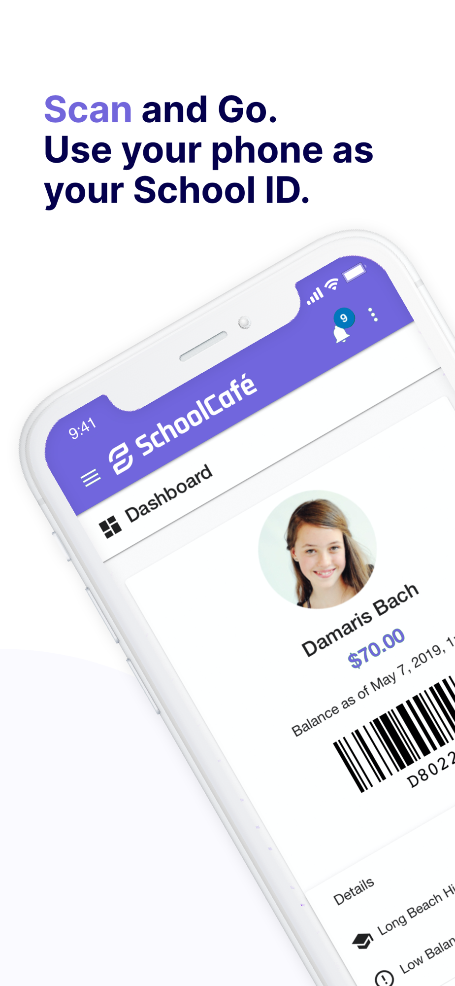 * Monitor your child's cafeteria account by making payments, viewing purchase history, and receiving low balance alerts