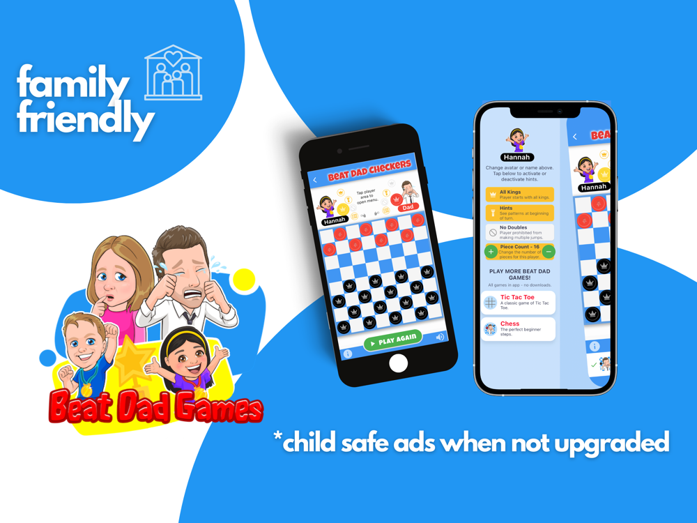 Designed for parents and children, Beat Dad Checkers offers developmental tools for kids to aid their cognitive development and game enjoyment.