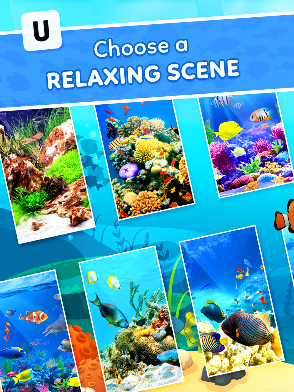 Enjoy calming underwater scenes that evolve as you play! Create the perfect virtual escape by completing puzzles, earning coins, and finding colorful fish to inhabit your ocean!