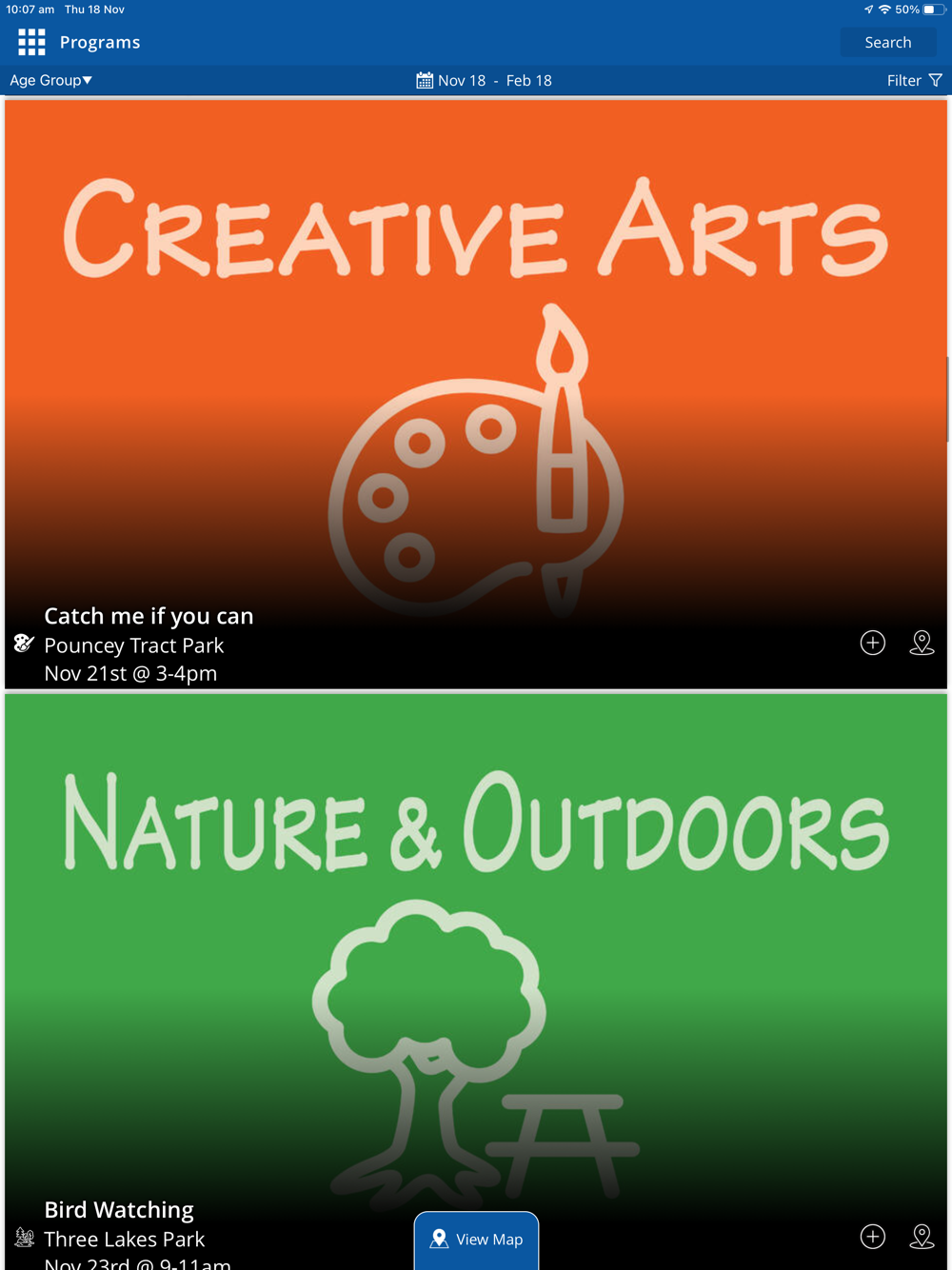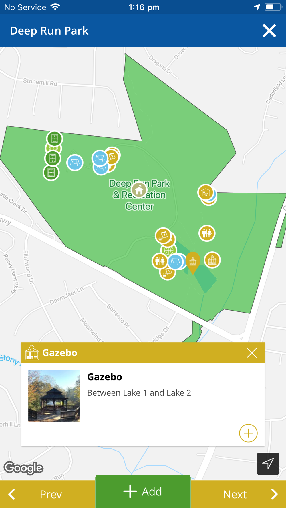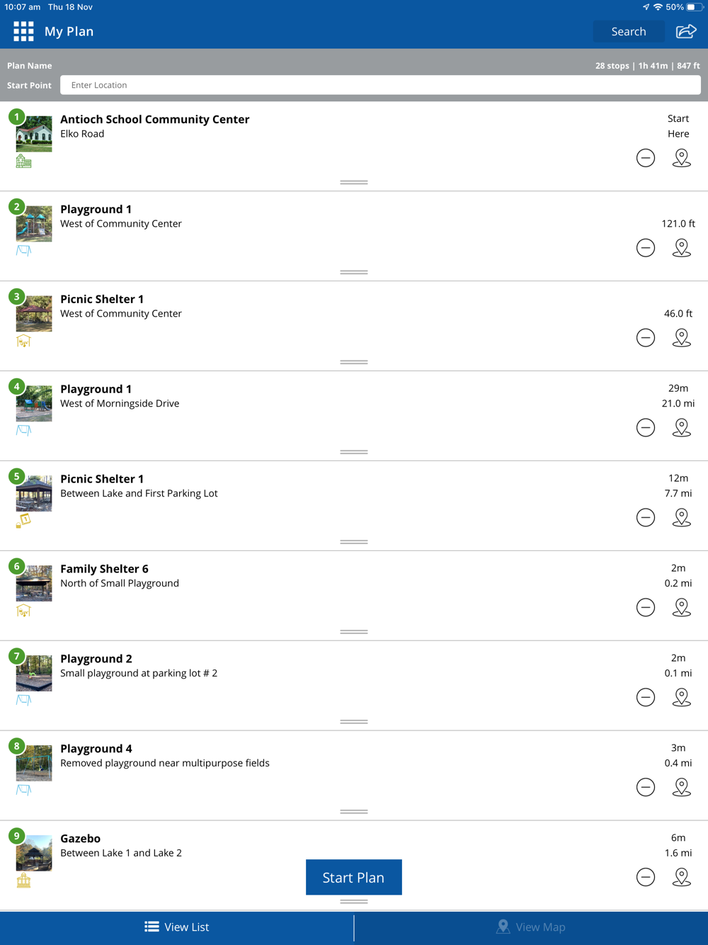 • Find playgrounds, shelters, trails, and more