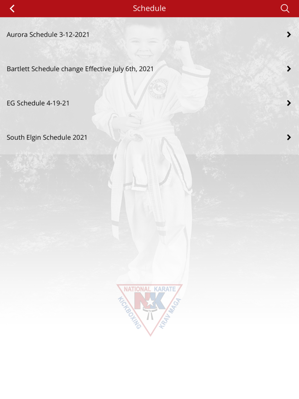 Welcome to the official APP of the National Karate Schools located in the Chicago suburbs. National Karate has a reputation for being family friendly while producing quality martial artists and confident people and has been voted “Best Martial Arts School” in the Chicago Suburbs for 10 years in a row! There are 4 full time schools in the western suburbs, located in Aurora, Bartlett, Elk Grove and South Elgin. National Karate teaches a combination of martial arts that include Tae Kwon Do, Karate, Kickboxing and Krav Maga Self-Defense and specializes in enhancing the lives of adults and children.