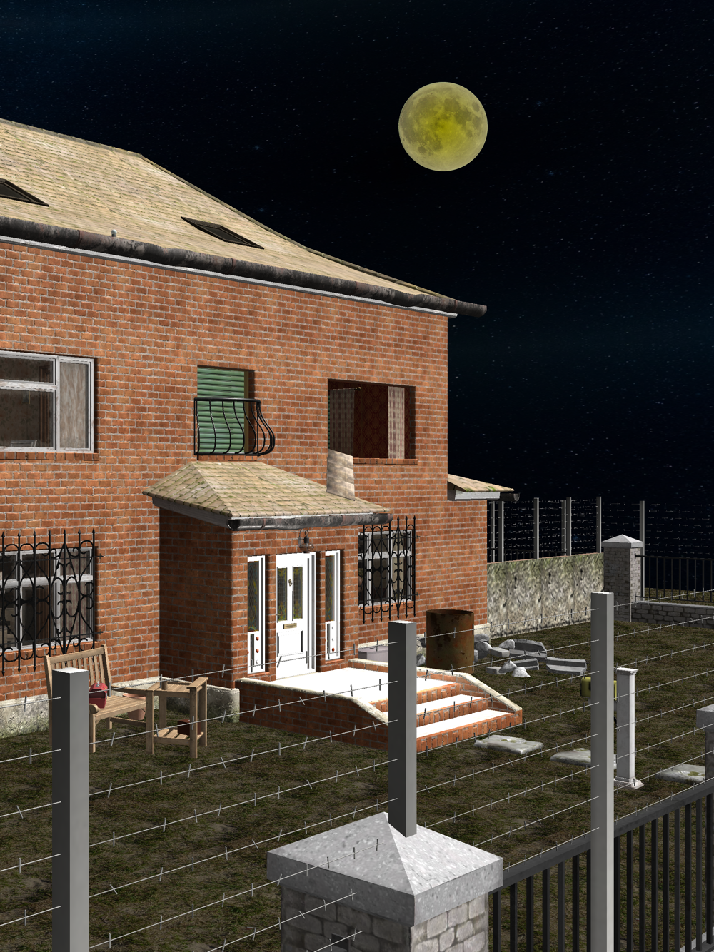 Elein, a girl who has lost her memory. There is a strange house in front of her.