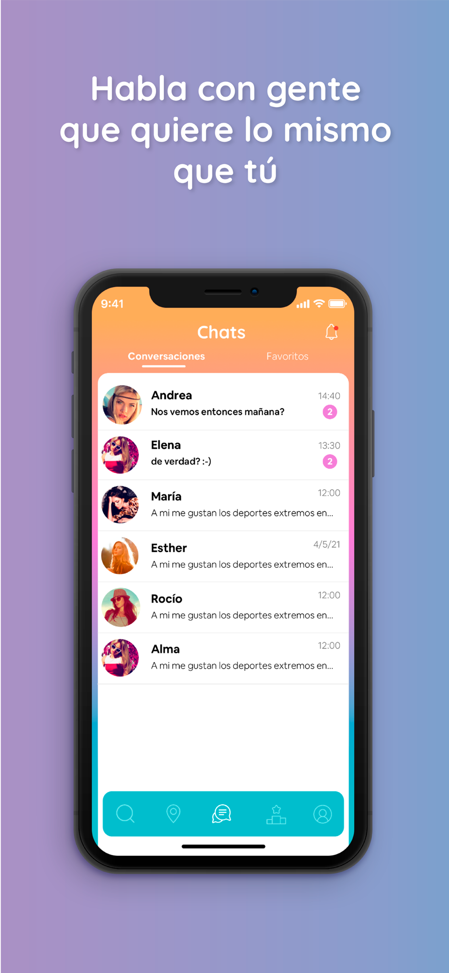 Conecta con esos perfiles que de verdad te interesan a través del chat, emoticonos, audios, fotos… Todo es posible.