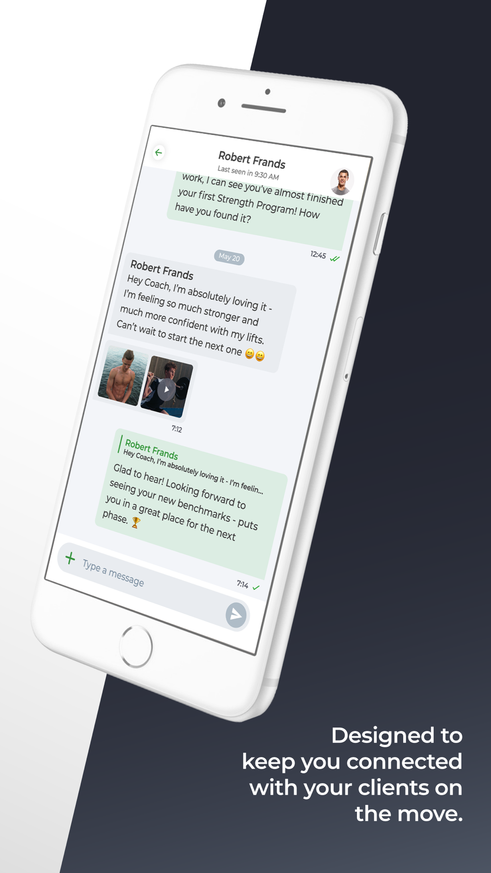 Our dedicated Coach App keeps you connected with your clients on the move, a great add-on to the fully powered desktop web platform.