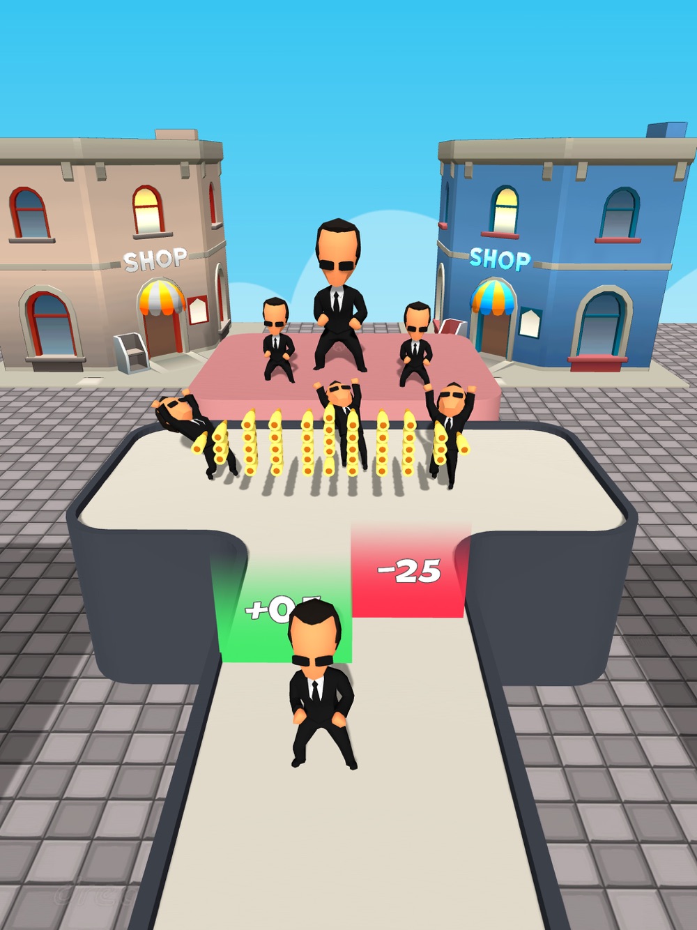 The Different Level Designs and the Harder Enemies with the Increasing number of Bullet Barriers required to break them make the game intense and yet interesting to play. The number of People You Gather Around Will help you Get away with it at the Latter stage of the Level. The Different Guns with Different Fire rates can be Purchased to easily Maneuverer the Difficult Levels.