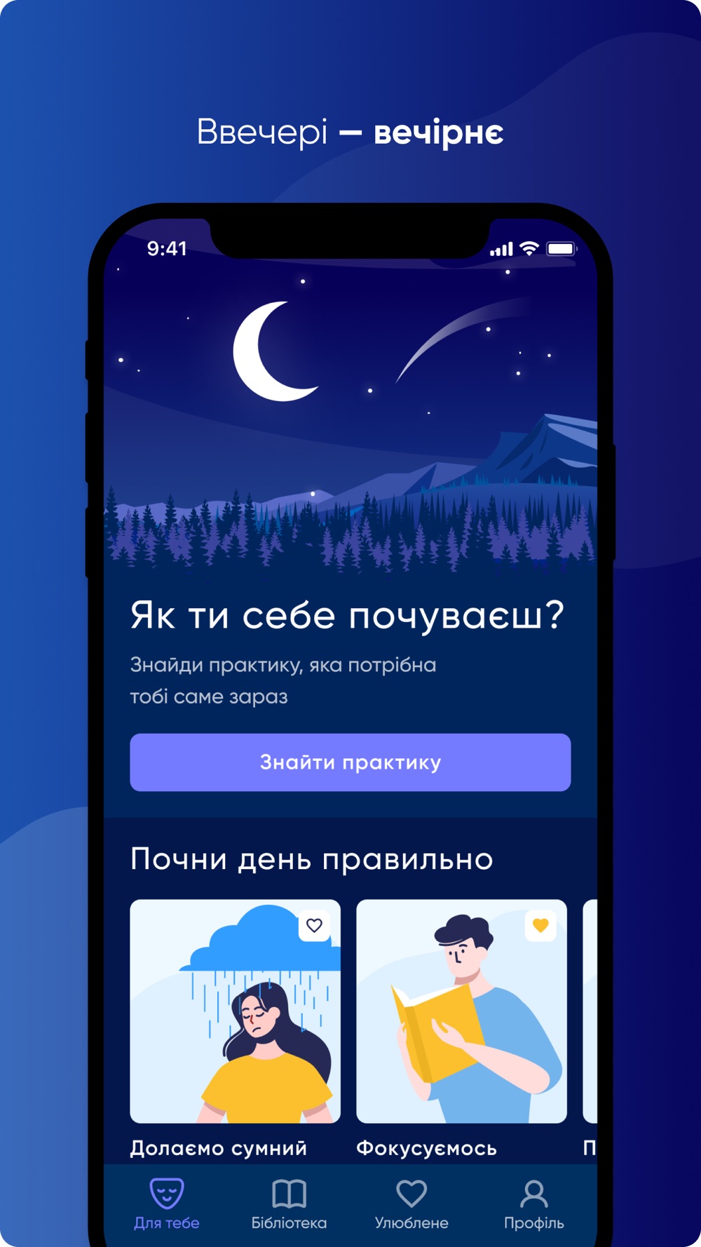 1. Find the right practice for any time – the application will help to determine your needs and choose a practice, taking into account the amount of free time and your emotional state