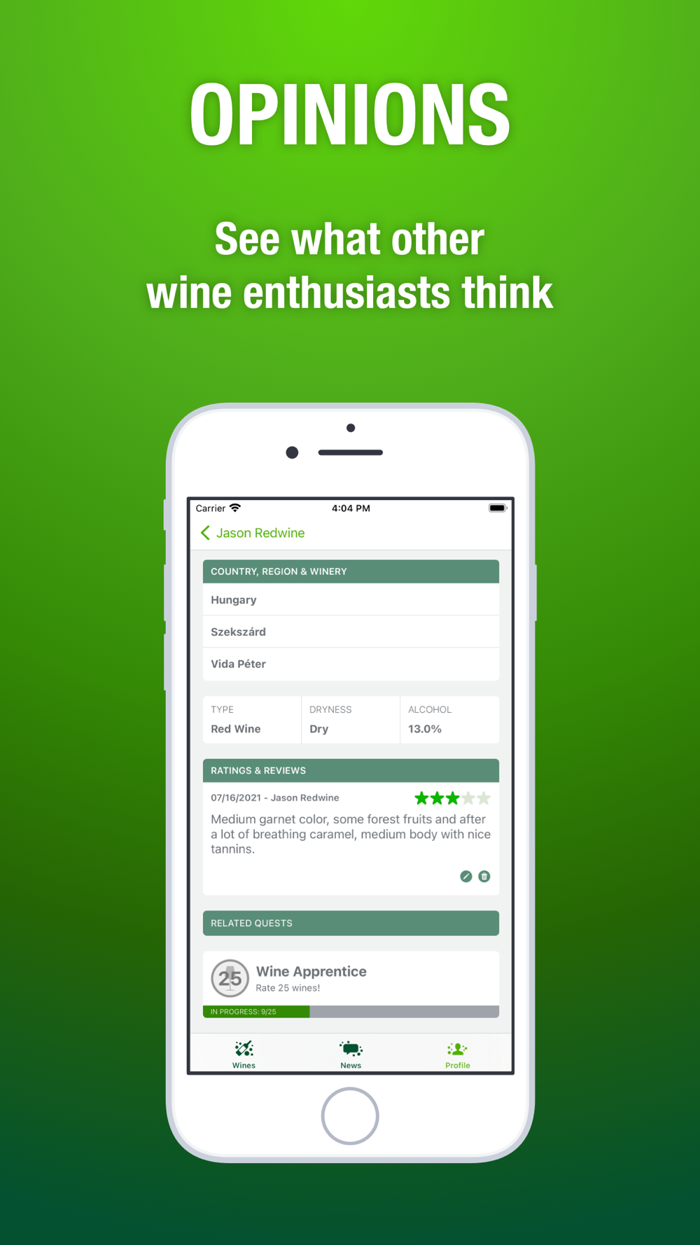 • turn your wine journey into a game by setting off on quests and completing them!