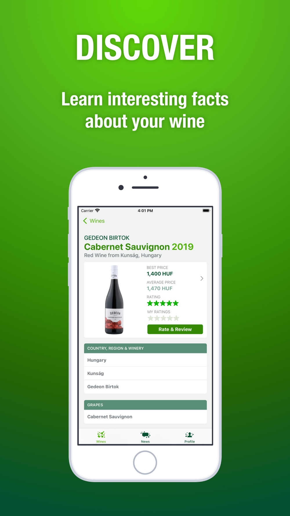• discover interesting information about each wine,