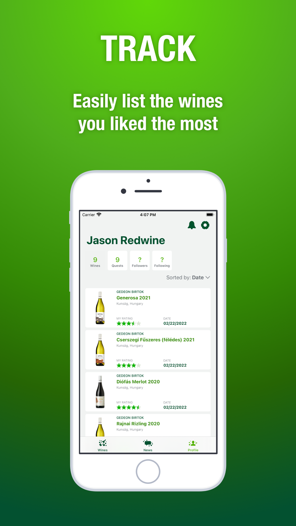 • track wines you taste so you don't forget them,