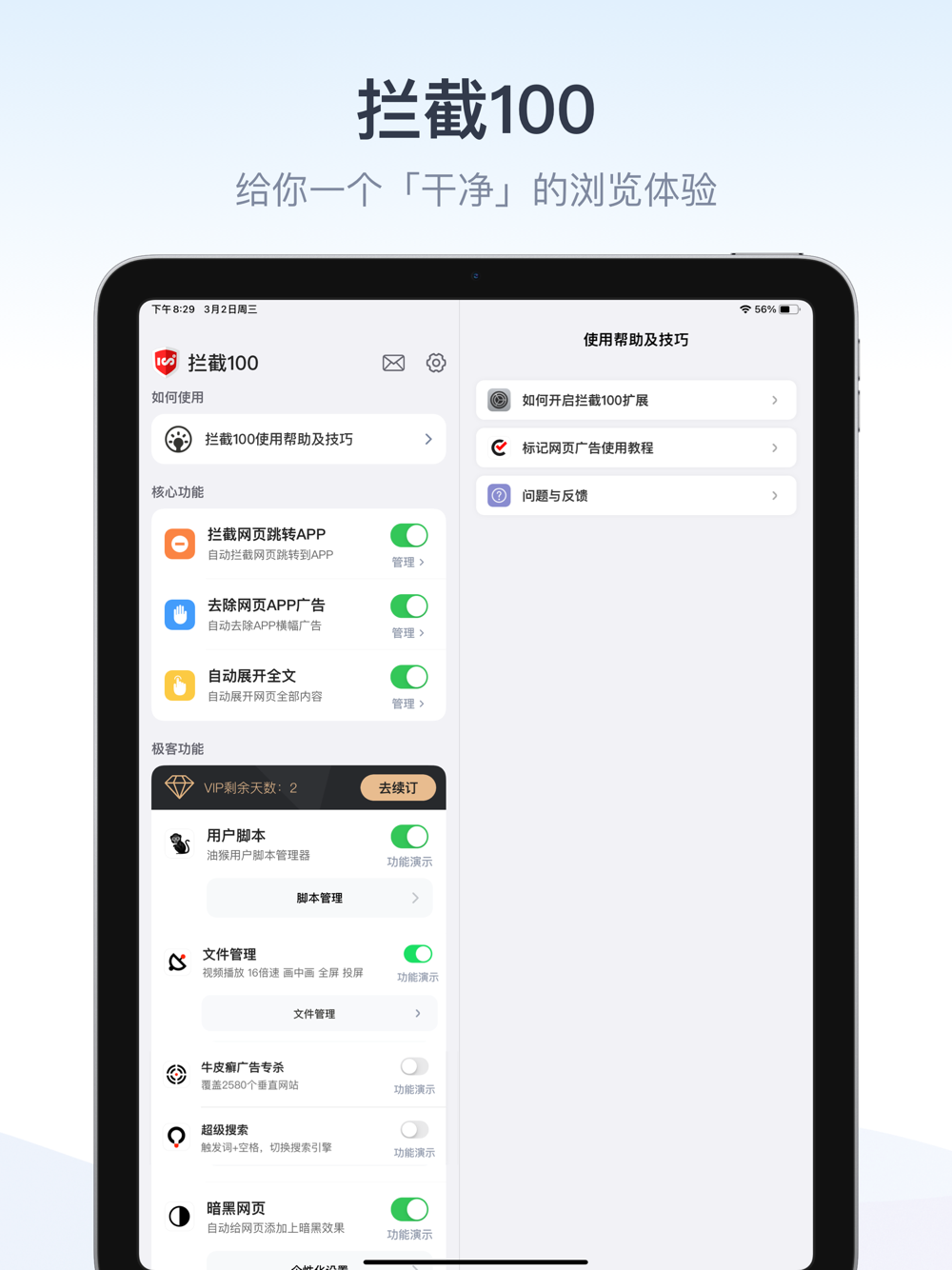 拦截100是一款Safari浏览器扩展,基于iOS 15/iPadOS 15开发,能够拦截恶意的网页内APP应用跳转,标记并去除网页中任意位置的广告模块。除此之外,对于许多网页为了恶意跳转APP而隐藏长文内容的行为,拦截100也会将其拦截并且自动展开长文内容,提高用户网页浏览体验。